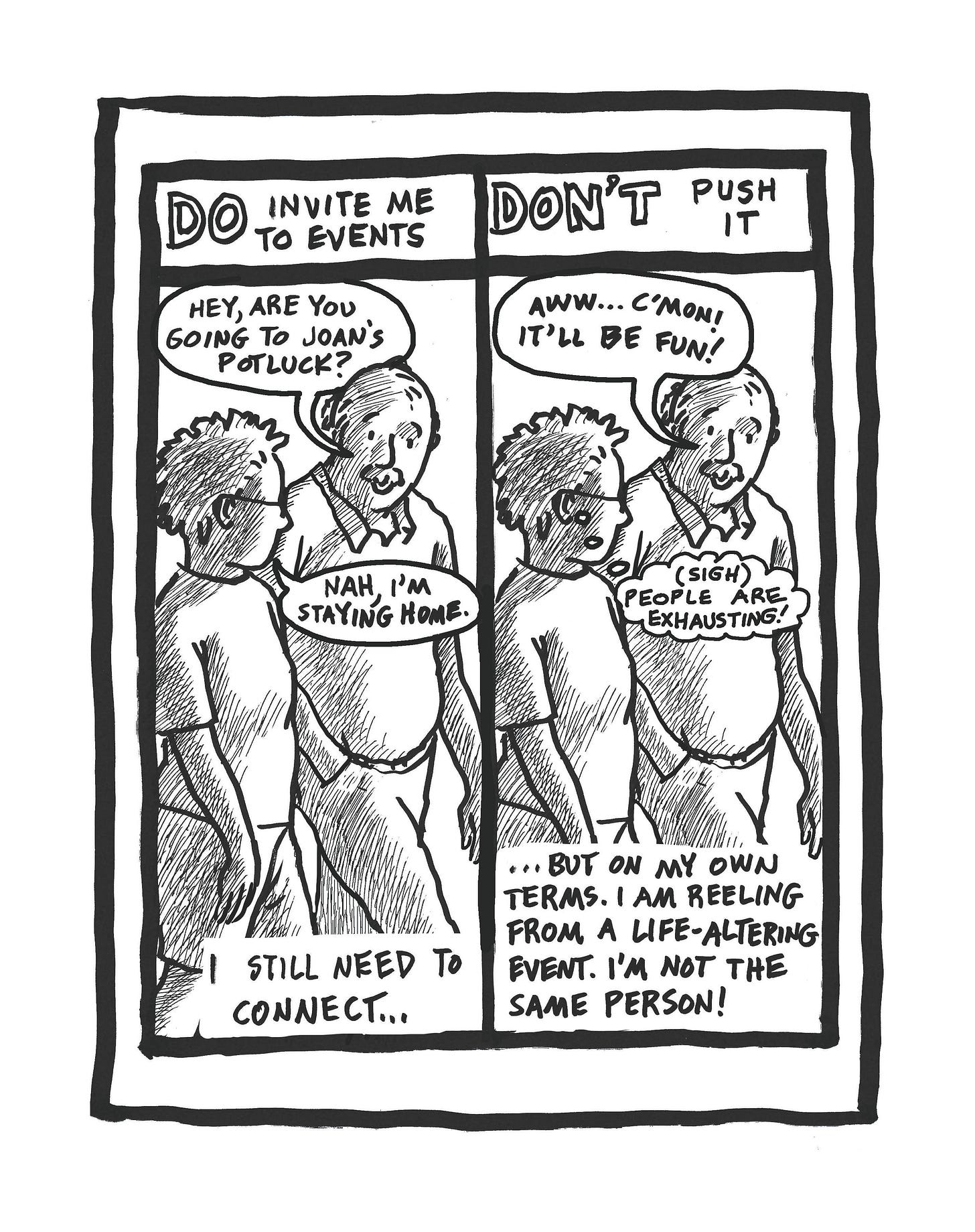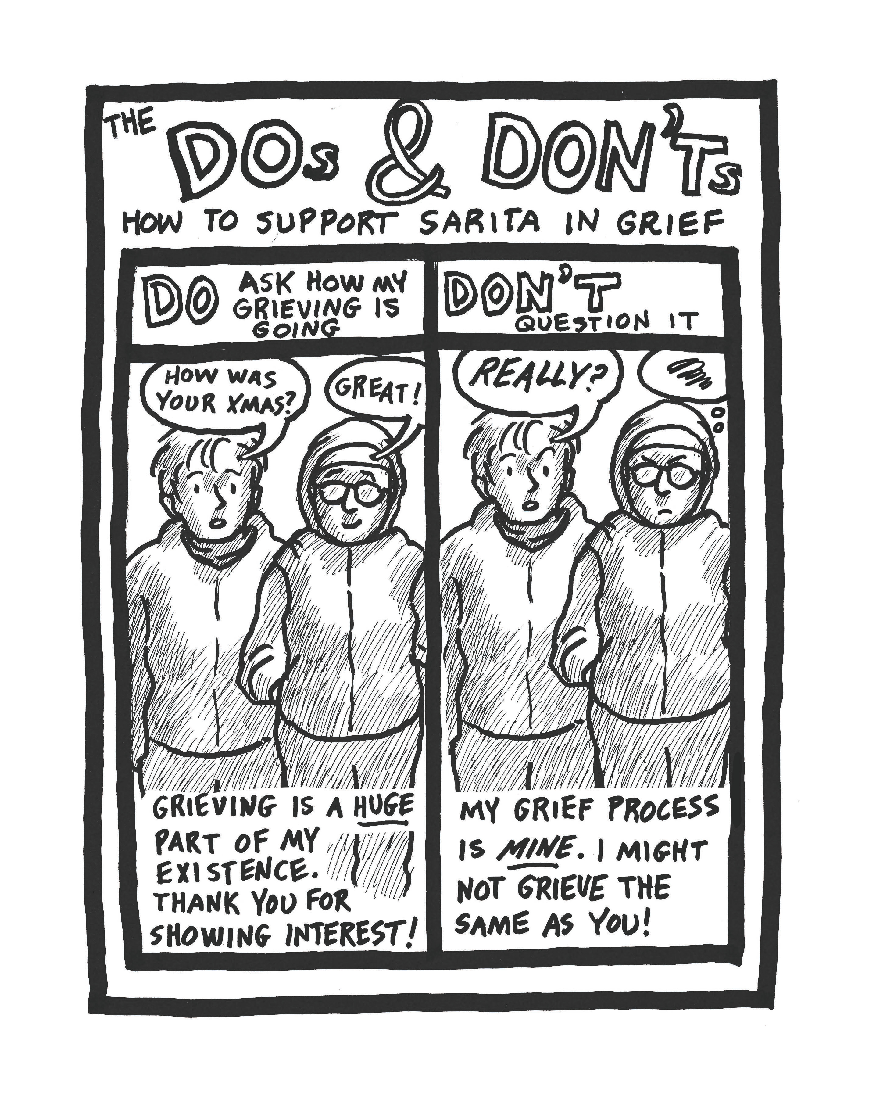 During the past 730 days, I’d been shocked by how uncomfortable many people are with my grieving process. Of course, I’m aware that they’re probably uncomfortable with Death, change, and their own emotions; it’s not necessarily personal. Anyway, here are some Dos and Don’ts for anyone stepping into my grieving space.